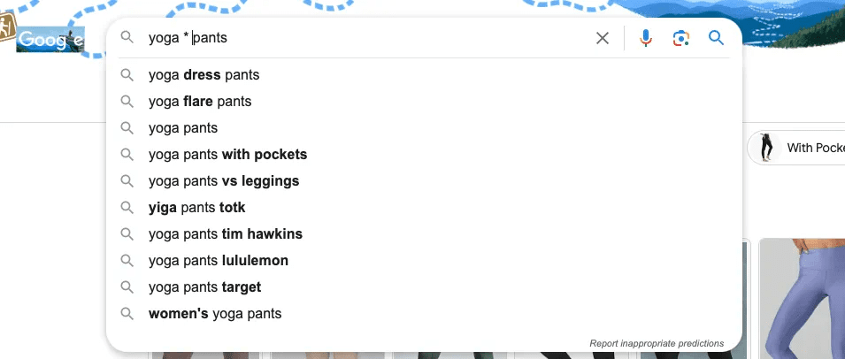 首先,让我们看看最基础且容易上手的方法——利用 * 通配符。通过在搜索词之间插入 * 通配符,我们可以让谷歌为我们展示更多的长尾关键词建议。