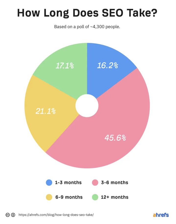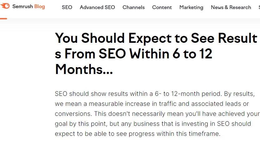 - SEMrush: 一般来说,你可能需要等待6到12个月来观察SEO带来的显著变化,如网站流量的增长。
