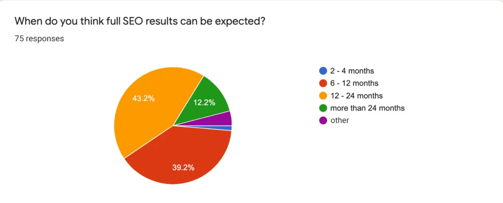 - Google: SEO可能需要4到12个月才能体现效果。Google的Maile Ohye提到,看到SEO的潜在影响可能需要四个月到一年。具体效果依赖于多种因素,如市场竞争和是否获得了专业SEO公司的协助。当竞争少或得到了专家指导时,结果可能更快。