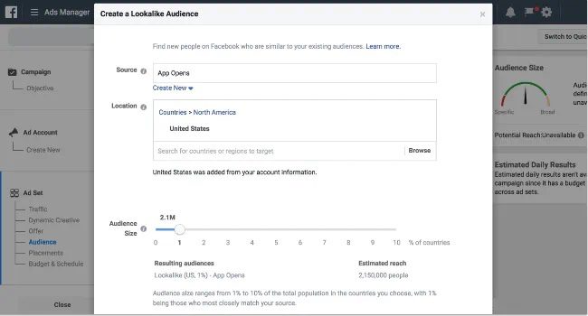 设定相似受众规模:你可以选择相似受众的规模大小。较小的规模会更接近基准受众,而较大的规模可能覆盖更广泛的潜在客户。