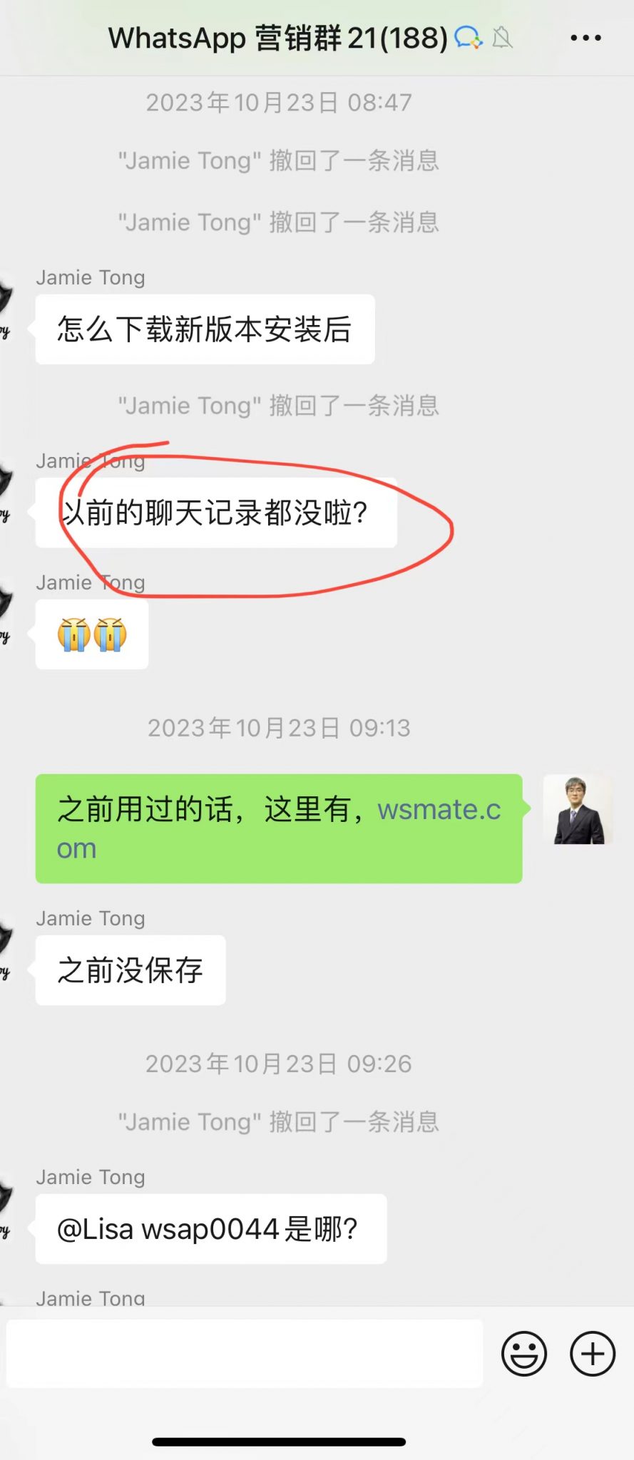 2. WhatsApp 突然退出,原号重新登录后,聊天记录莫名丢失。俗称“WhatsApp 抽风”。