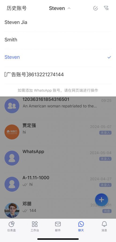 - 上级可以切换到下属的 WhatsApp 回复客户,而客户无感,帮助上级更好的赋能下属,有效帮助新员工成长;