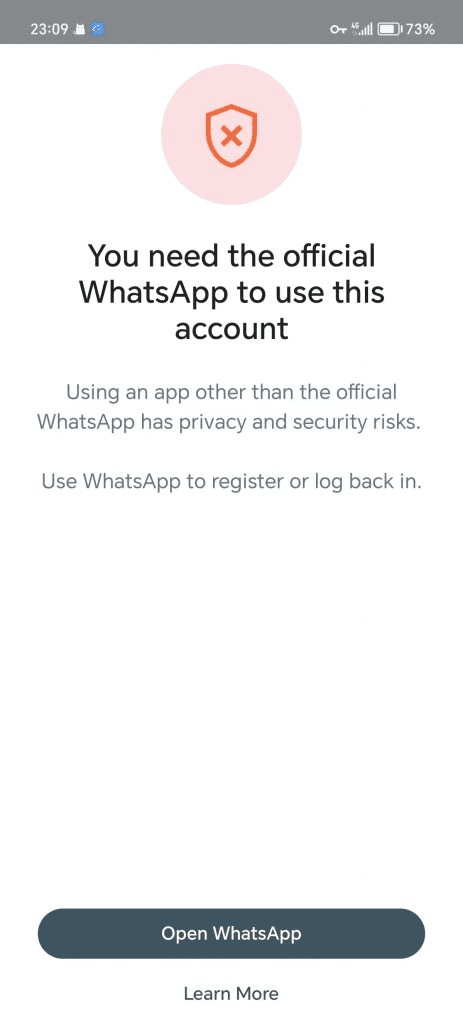 打开WhatsApp,随便输入一个号(任意号码),看是否仍然提示非官方。