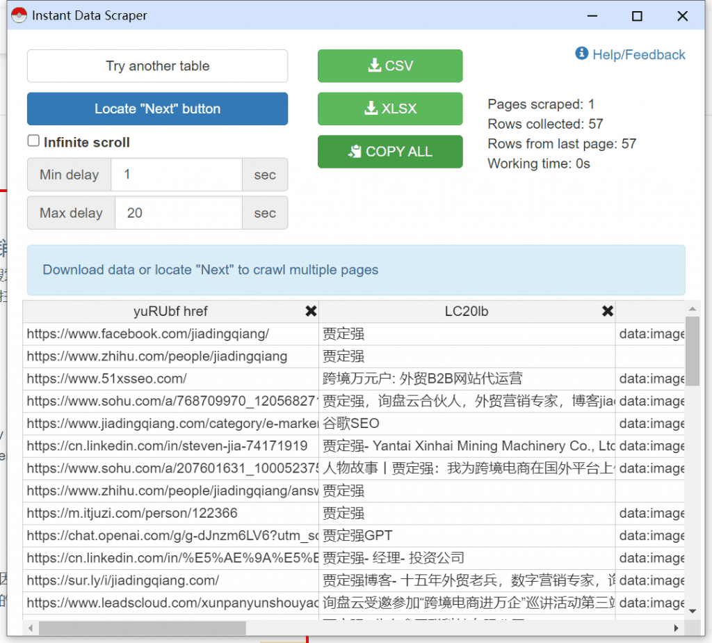 1、Instant Data Scraper,自动提取网页中的URL的插件。安装地址:https://chromewebstore.google.com/detail/instant-data-scraper/ofaokhiedipichpaobibbnahnkdoiiah