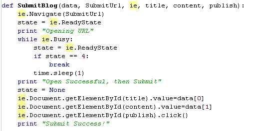 python编写的博客群发程序 ✍ 最近更新于2022-11-08,发表于2010-03-11 作者 询盘云-贾定强 前几天写了一篇“想写一个能批量发博客文章的小软件”,阐述了自己的大概思路。经过几天的研究,终于将程序完成了,先将部分代码和大家分享一下。如果有人需要的话,可以给我留言。由于python的程序对换行和缩进的要求非常严格,所以在此只能贴出代码截图。 博客自动登录代码博客文章自动提交代码 博客文章自动提交代码 相关文章推荐: 免费wordpress博客 网站外链SEO优化:站群链接,行业网站链接,社会化网络链接 自己博客分析 半自动添加书签-网站免费推广工具 采集网站的自动更新 Python抓取爱站关键词排名数据 微信扫一扫 或 点击链接联系我