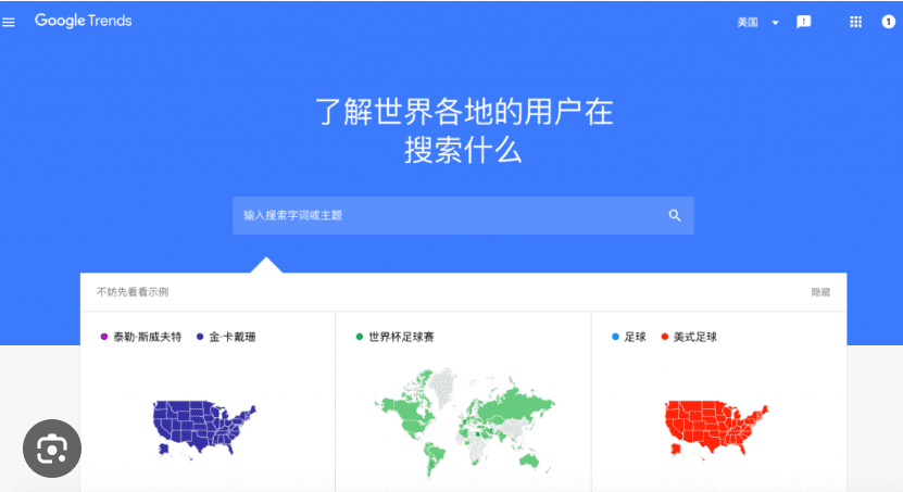 谷歌趋势可以帮助您找出哪些产品或服务正在受到关注,哪些市场对您的产品需求更大。借此,您可以提前布局,抓住市场机会。