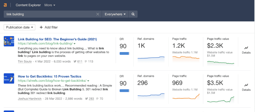 SEO 优化不仅仅是关于关键词和反向链接,还需要关注内容的质量和相关性。Ahrefs 提供的 Content Explorer 工具可以帮助你挖掘出哪些话题和内容在特定领域内最受欢迎。通过这一工具,用户可以: