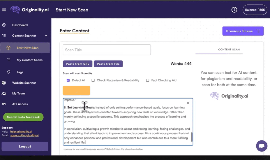 Originality.ai 是一个专为内容创作者和SEO专家设计的原创性检测工具。它不仅能检测抄袭,还可以识别是否存在AI生成内容的痕迹。对于需要发布到Google等搜索引擎的内容,Originality.ai 是提升可信度的重要工具。