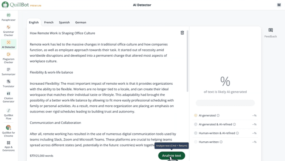 • 快速检测:几秒内完成文本分析。