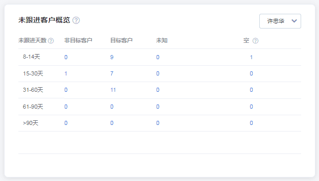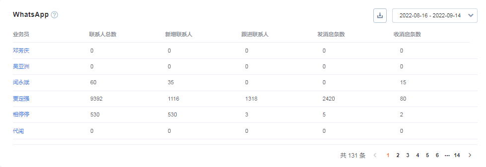 询盘云 WhatsApp SCRM 还支持做WhatsApp报表。业务员每天的WhatsApp跟进客户的情况,比如WhatsApp里面有多少个7天未跟进的、或者说14天到30天、30天以上未跟进客户,都可以比较清晰的看得出来。那这样的话我们就可以制定一些绩效考核,比如每天WhatsApp要沟通多少个客户、你这个几天没有跟进的客户可能就要掉入公海等。一方面就是可以这个查看他们工作量,另一方面也是对业务员的一种压力,就是让他们知道,客户如果我不快点跟进他就会掉入公海,被其他的客被其他的同事捡走,然后来刺激他们的积极性。